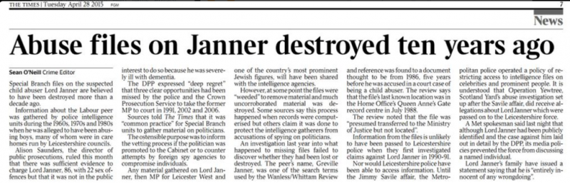 The Times, 28 April 2015, on Special Branch and Cover Up: