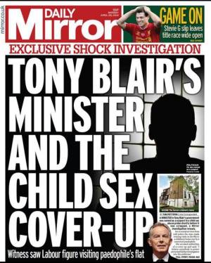 27 Apr. 2014 →The Mirror, Minister in Tony Blair’s government among group of men suspected of abusing children at home run by paedophile: