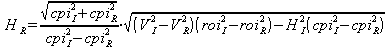 where RoI is the return on investment (absolute) and CPI the consumer price index (absolute), whereas they are here used in absolute instead of the usual relative (%-) values. But because of the division, also the relative values can be used here (written in small letters cpi and roi).